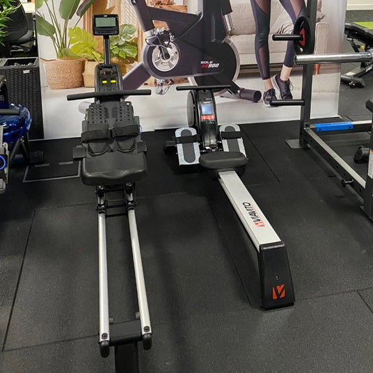 Rowing machines offer one of the best all-over body workouts that any cardio machine can offer. Modern rowing machines are incredibly good at burning calories, toning and honing muscles all over the body, improving cardio fitness, and strengthening the respiratory system. Appearing first in the mid-1800s rowing machines have been popular ever since. Modern rowing machines come in all shapes and sizes and there are models available to suit every budget. From simple, no-frills, inexpensive models through to high-end premium interactive machines with large full-colour touch-screens and multiple, guided workouts there’s a huge range to choose from. With different types of resistance mechanisms including manual magnetic, computer-controlled magnetic, air, and water, as well as a air/magnetic models available we’re here to help guide you to the one that’s going to best fit in with your fitness goals, your budget, and your home.