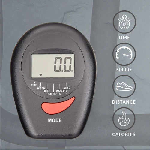 - Console Feedback: Time, speed, distance, calories, total distance; scan mode