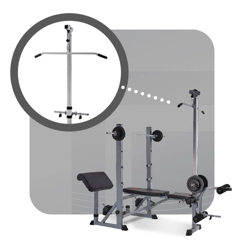 - Accommodates arm curl and lat tower attachments