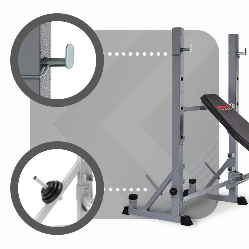 - A versatile 2 in 1 product (weight bench + squat rack)
