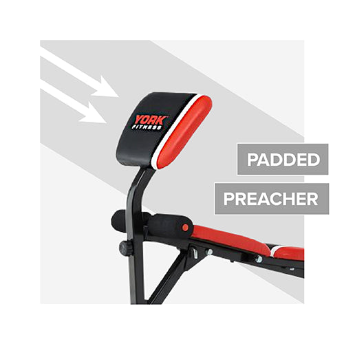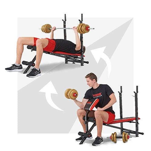 York Warrior 2 in 1 Folding Barbell and Ab Bench with Curl