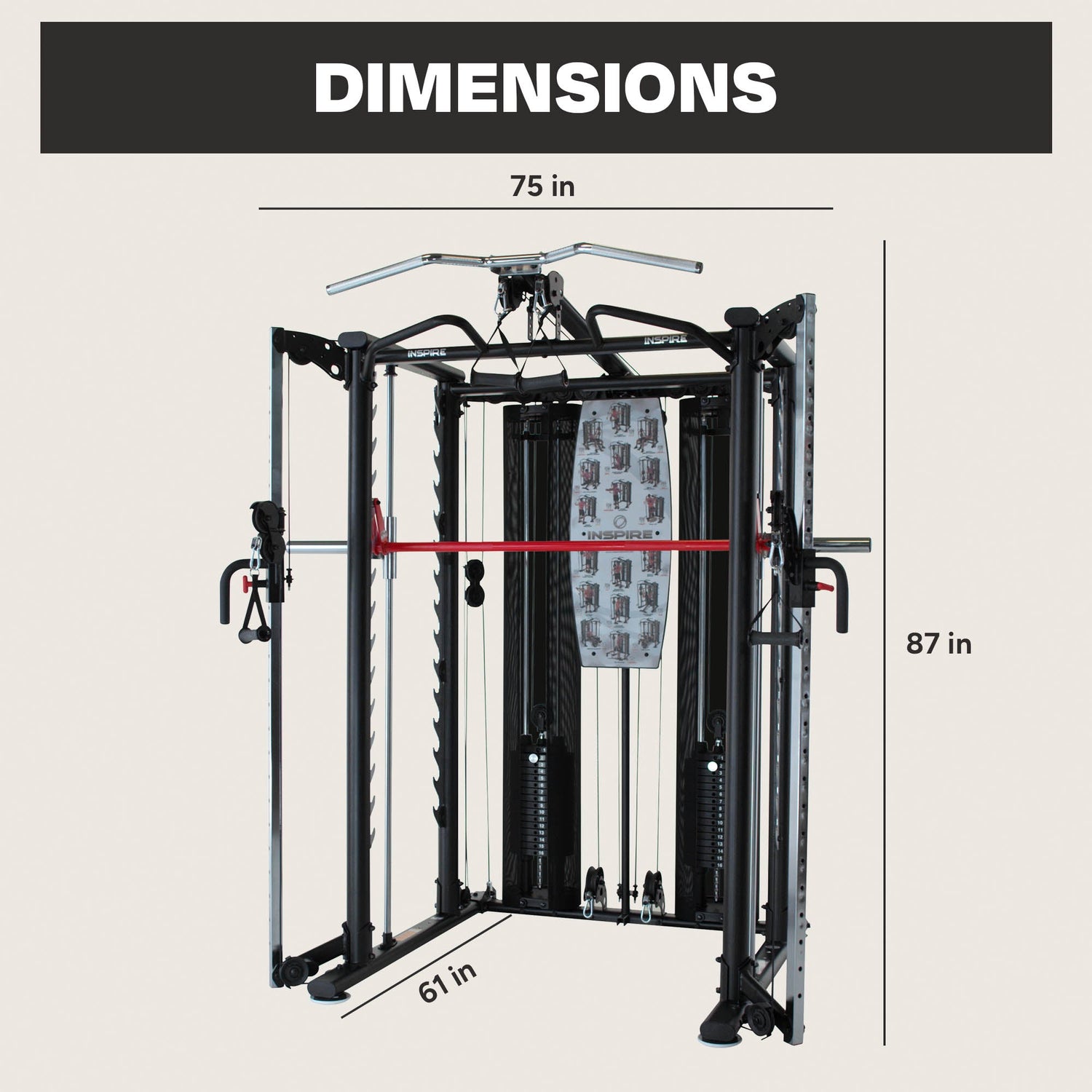 - Power rack, Smith machine, functional trainer and dual adjustable pulley in one unit