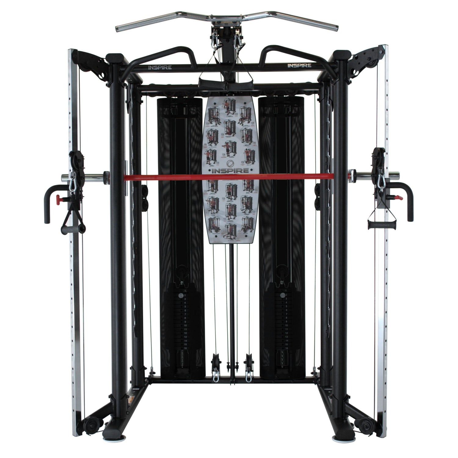 - Dual racking system accommodates Smith bar and free weight bar simultaneously