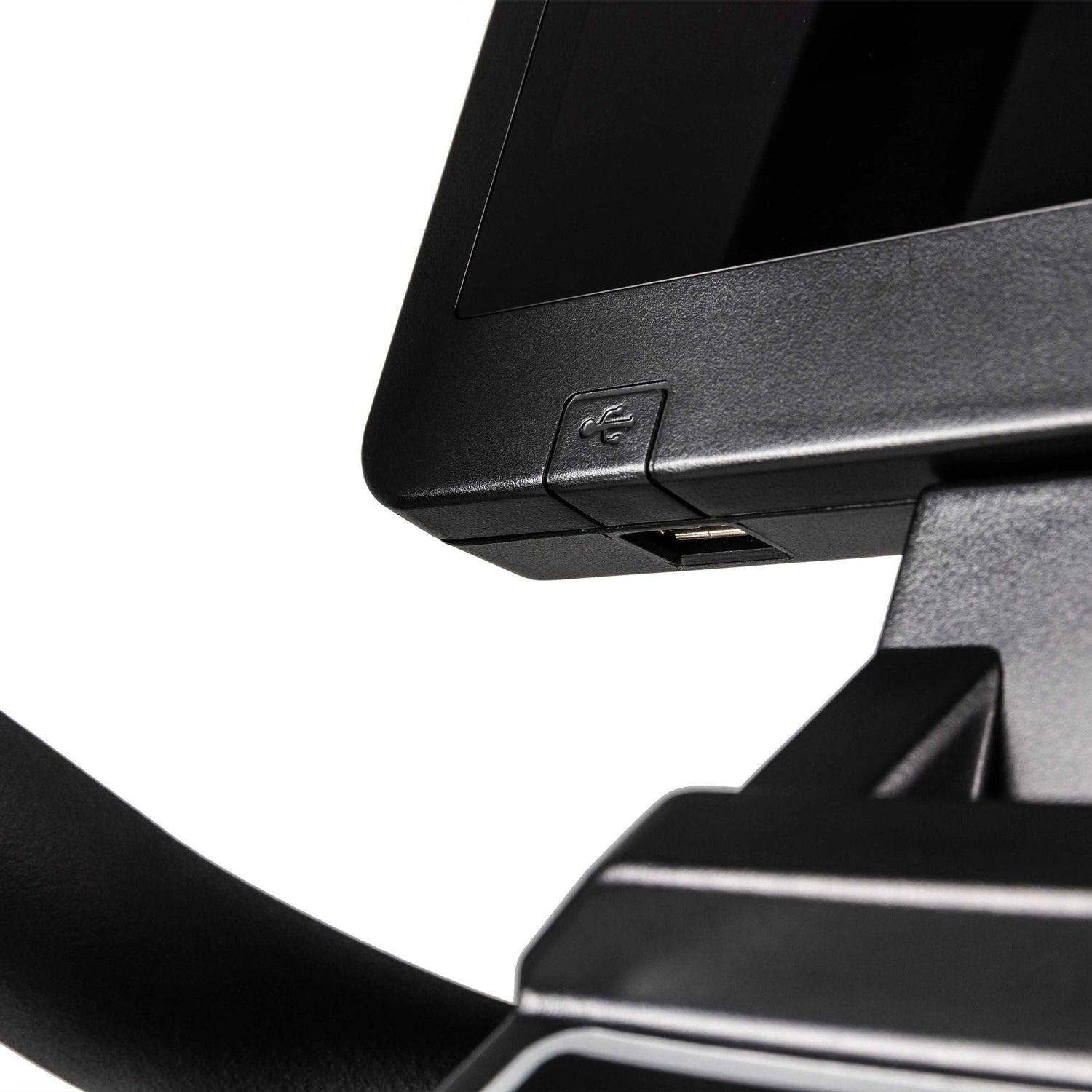 - Additional Features: USB charger, HDMI port for direct cable mirroring, extra wide, 10 groove poly-v belt with spring loaded idler, oversized 1" crank axle along with heavy duty roller bearings, tablet design with a minimalist appearance and an intuitive layout for easy navigation, NFC login function