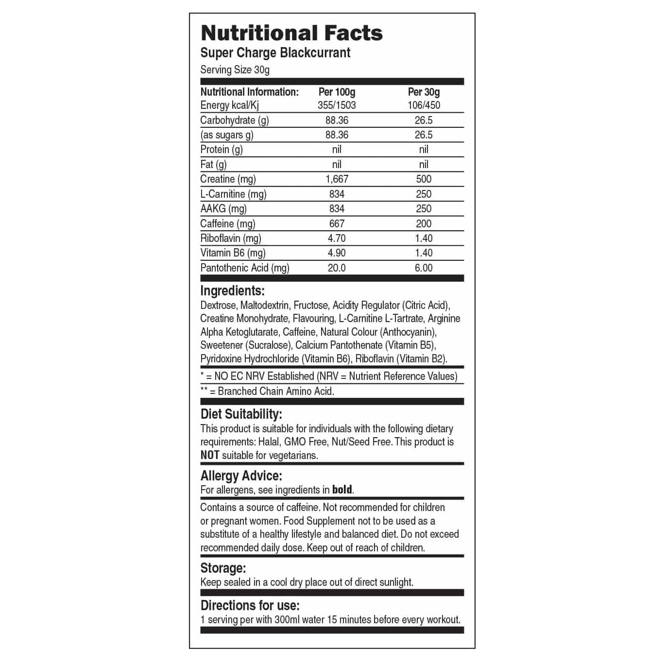 - Mix one 30g scoop of powder with water or juice before your workout. Avoid taking the Super Charge at night as it contains a source of caffeine so may affect your sleep.