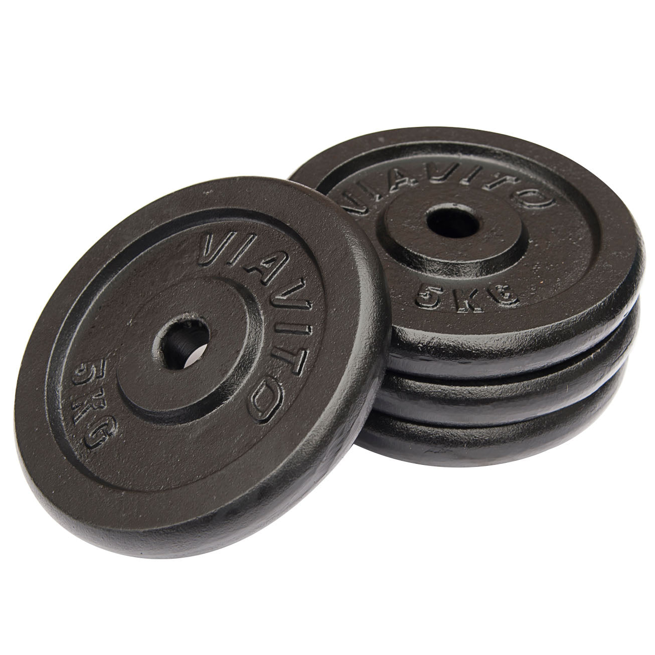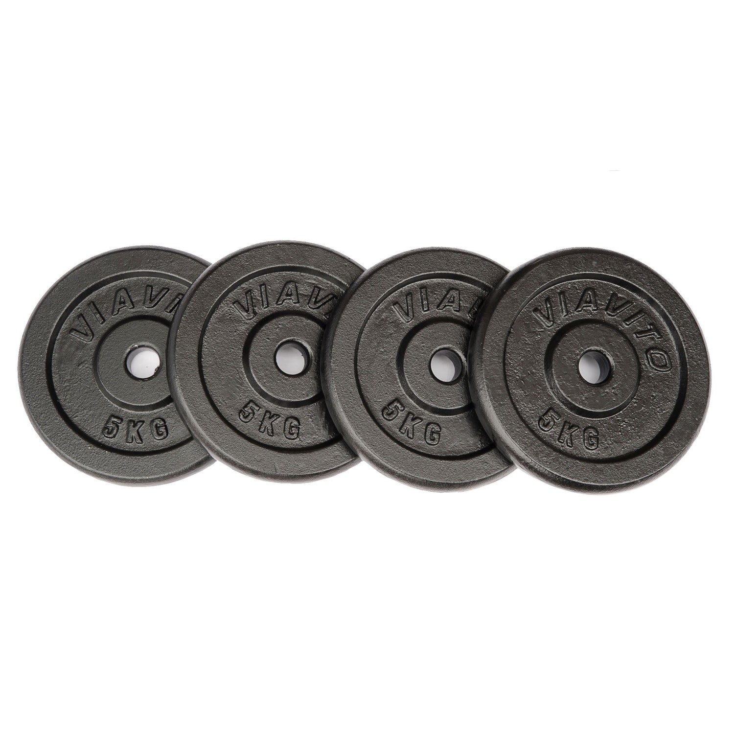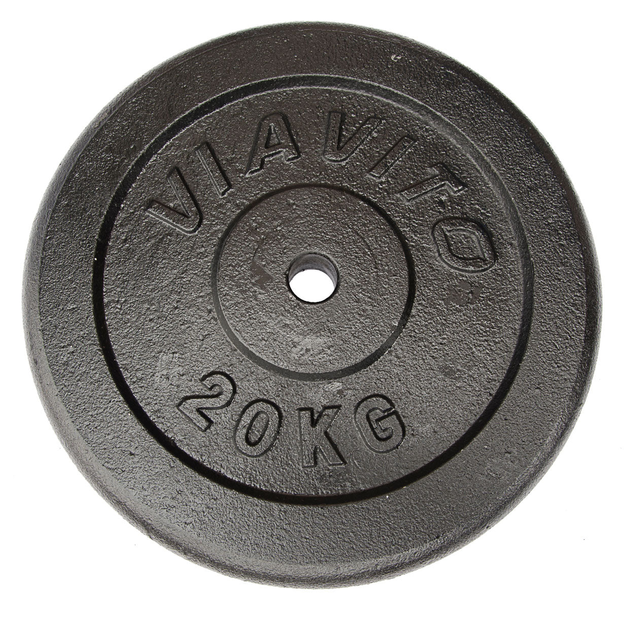 Manufactured to a high standard, the Viavito cast iron standard weight plates are designed to last. With a high-quality, durable, chip resistance silk black finish the weight of each solid cast iron plate is clearly stamped for quick and easy identification. These plates are a great no-nonsense product and offer outstanding value for money. Suitable for use with any 1" bar or dumbbell bar.
