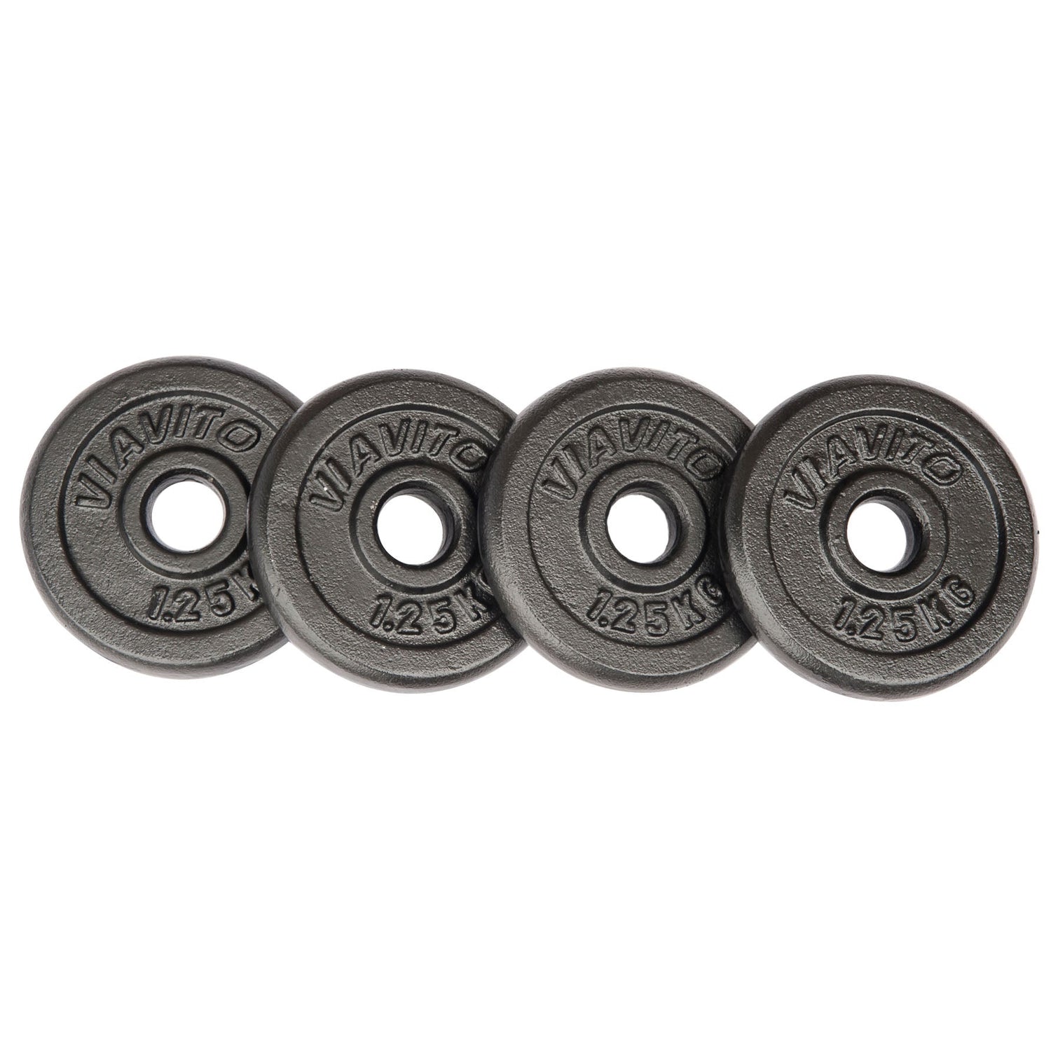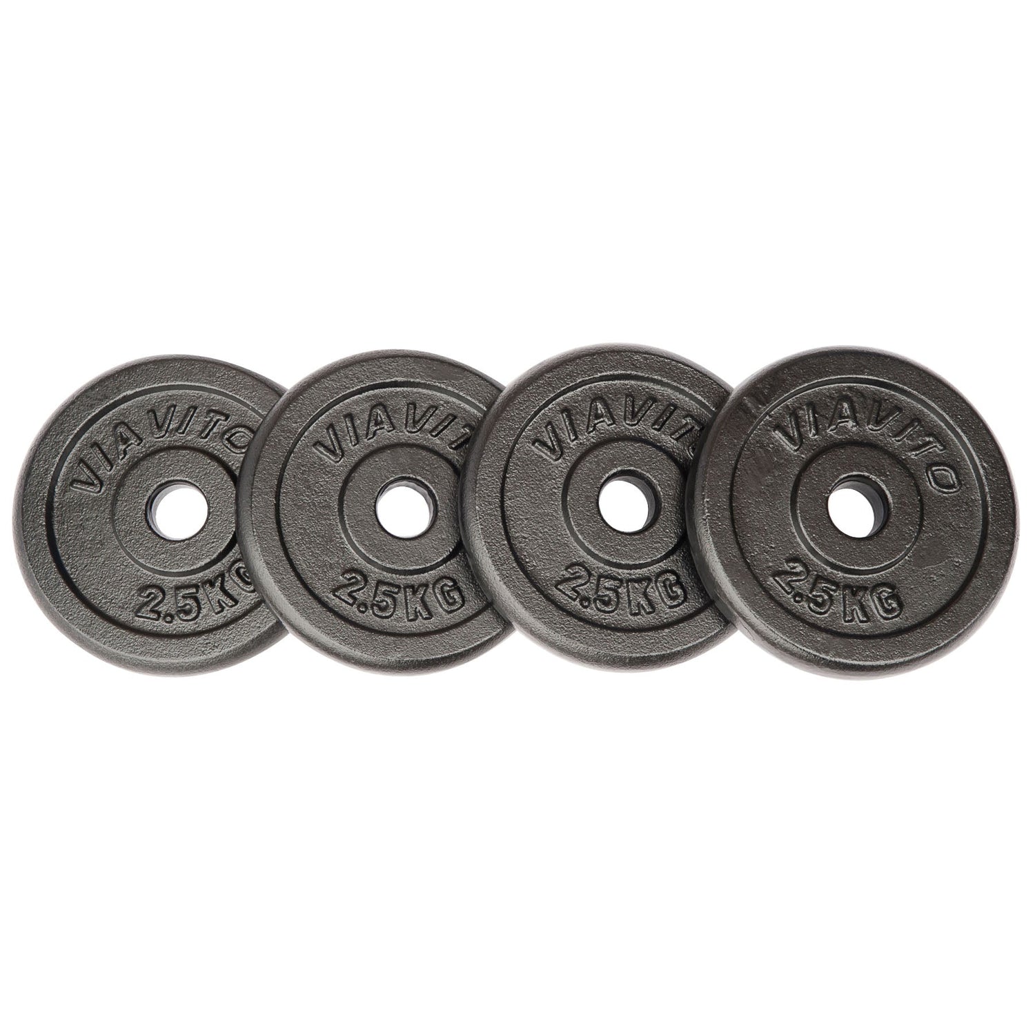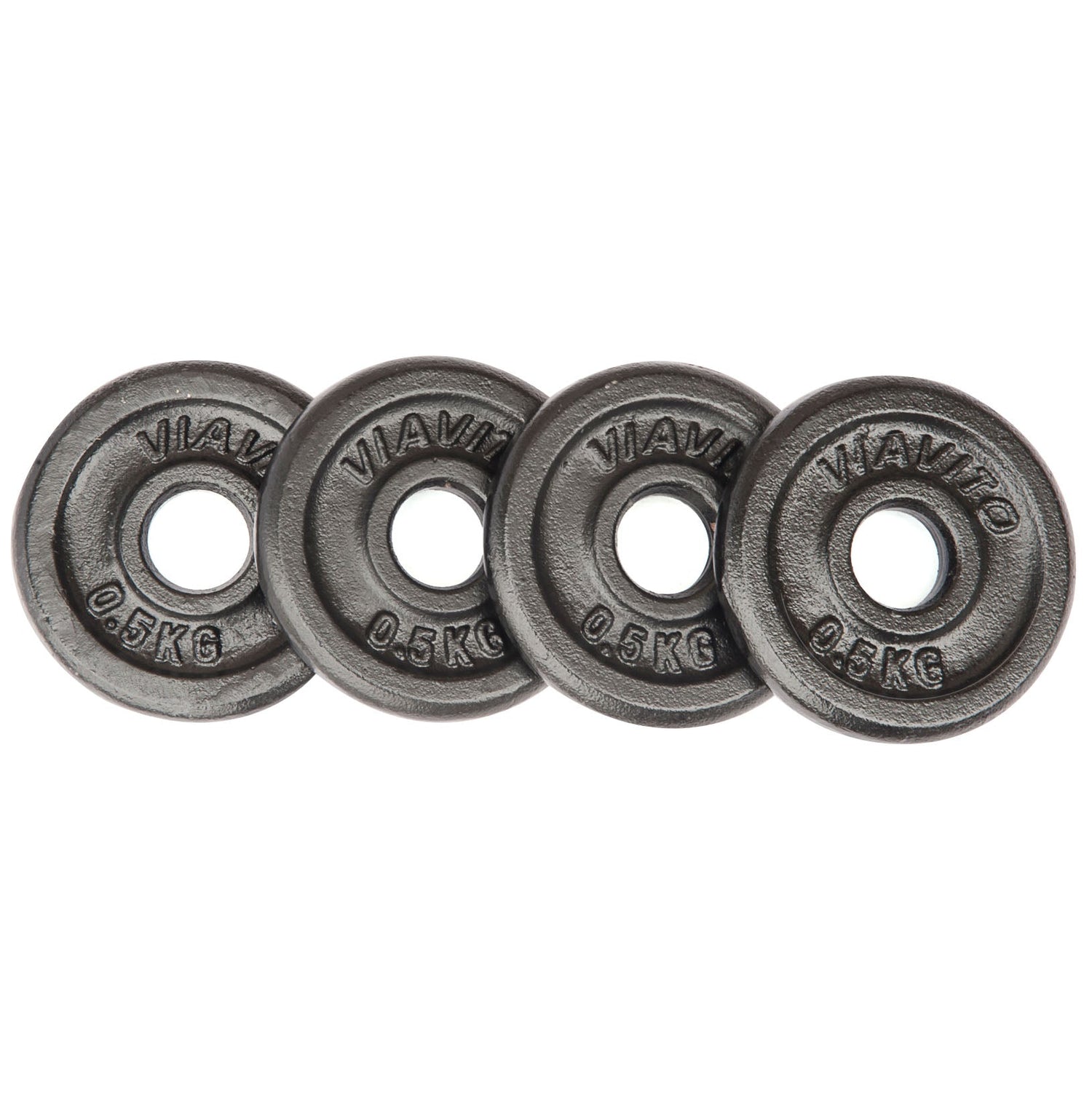 Manufactured to a high standard, the Viavito cast iron standard weight plates are designed to last. With a high-quality, durable, chip resistance silk black finish the weight of each solid cast iron plate is clearly stamped for quick and easy identification. These plates are a great no-nonsense product and offer outstanding value for money. Suitable for use with any 1" bar or dumbbell bar.