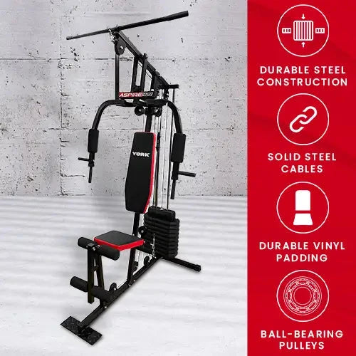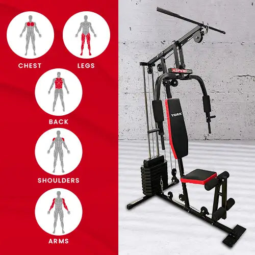 - Stations: Chest press, chest fly, Lat pulldown, leg extension