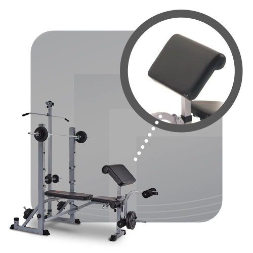 - Accommodates arm curl and lat tower attachments